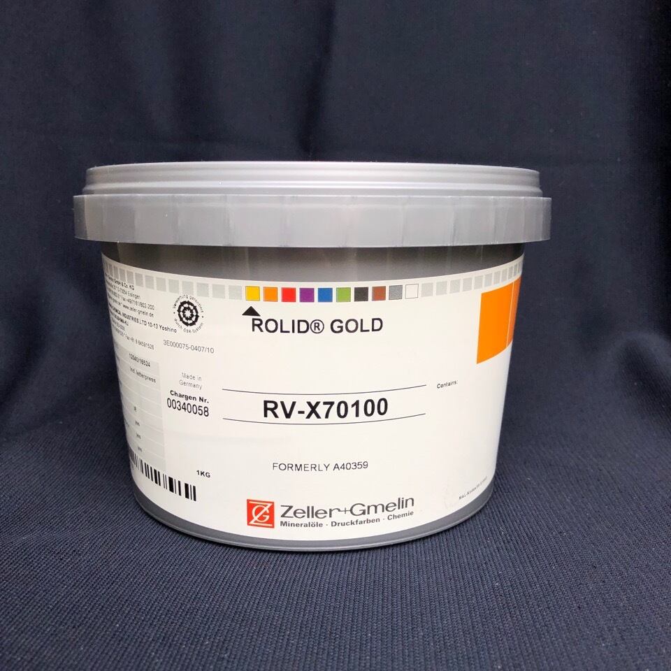 ドイツの化学製品メーカー、ゼラー社(Zeller+Gmelin社)のドライオフセット印刷用インキ「ROLID RV-X70100 Gold カッパー系ゴールド 赤金」です。